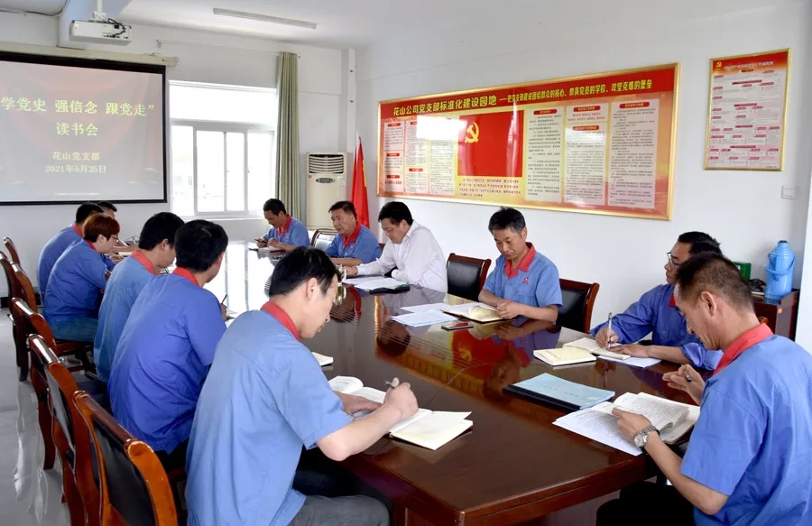 5月25日下午,花山公司党支部第一党小组召开“学党史、强信念、跟党走”读书会,拼搏手机官方网站入口党委书记、董事长吴福胜以党小组普通党员身份参加。花山党支部委员、领导班子成员受邀参加并分享党史学习体会。